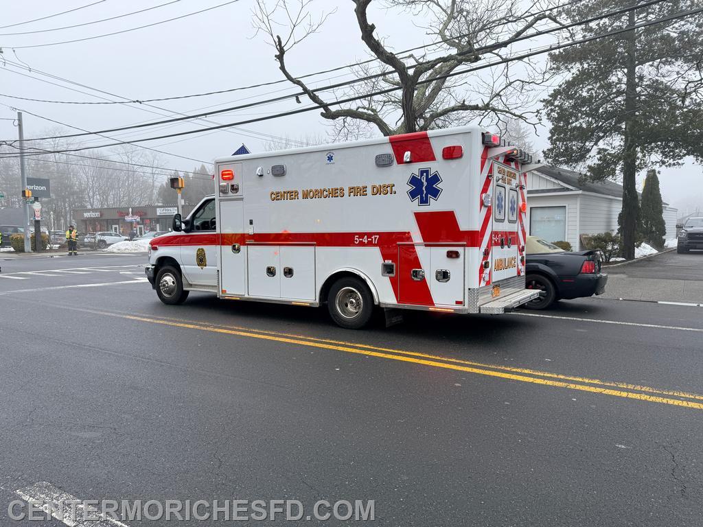 | At 1:11 PM, Center Moriches Fire Department was requested to respond to an auto accident with injuries at the intersection of Railroad Avenue and Main Street.