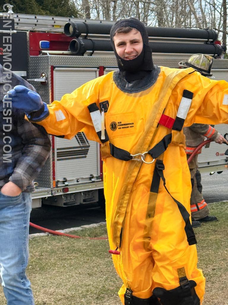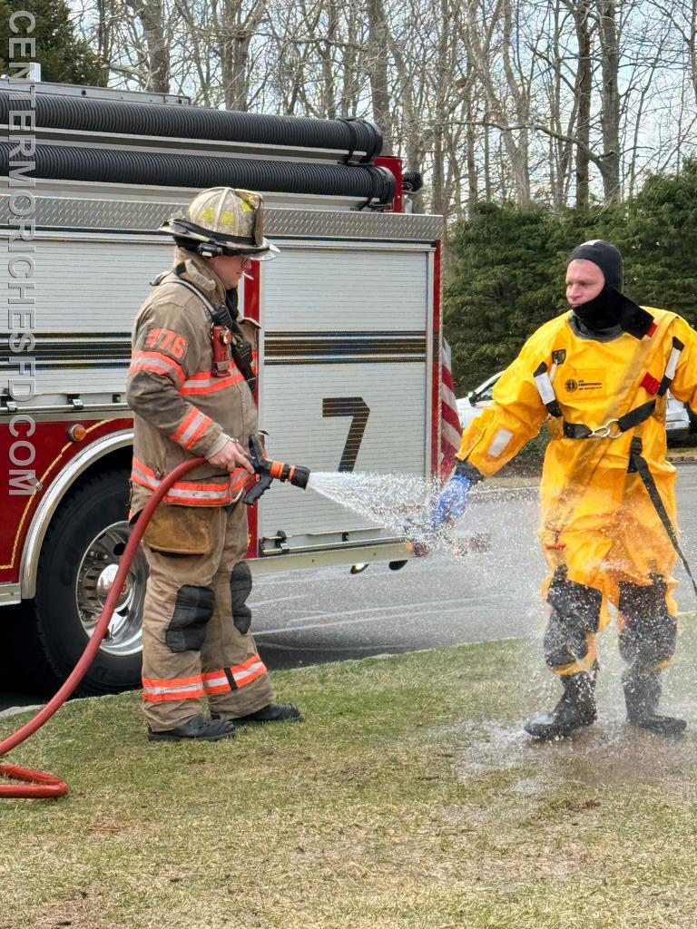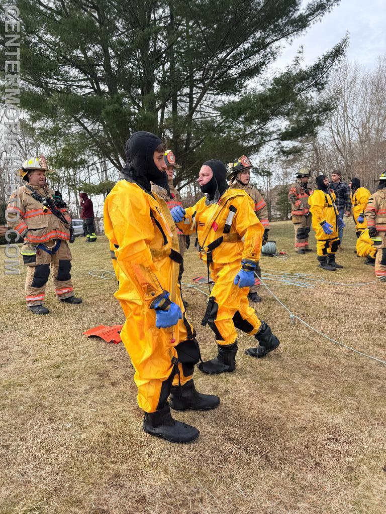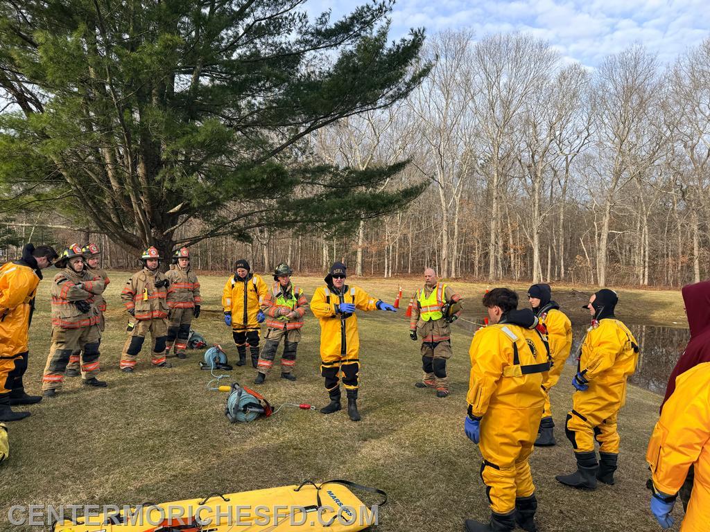 | This morning, the Center Moriches Fire Department Water Rescue Team stood by as the dedicated safety team for Manorville FD’s annual ice rescue training.